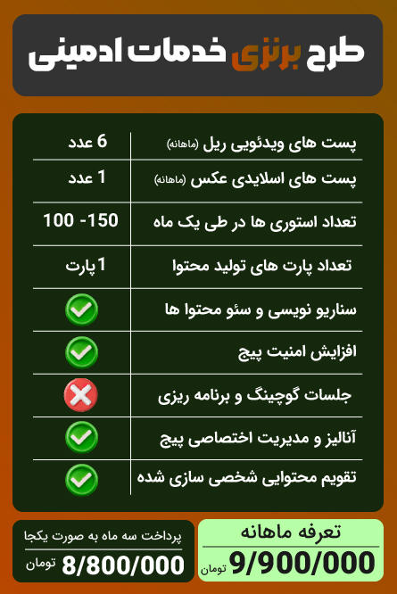 خرید ماهانه : یعنی هزینه ی یک ماه فعالیت حرفه ای. خرید سه ماهه : در واقع شما با پرداخت هزینه 3 ماه به صورت یکجا میتوانید تخفیف ویژه ای روی هزینه ها دریافت کنید.